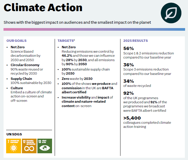 ITV was awarded an ‘A’ rating in 2025, which recognises leadership in climate action, environmental transparency, and performance.